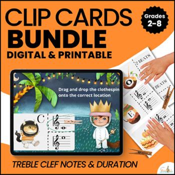 Clip Cards For Treble Clef Notes And Note Value / Music Games Bundle