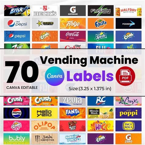 70 Vending Machine Labels, Vending Machine Stickers, Sparkling Water And Soda Labels, Soft Drinks, Soda Machine Labels, Drink Machine Labels