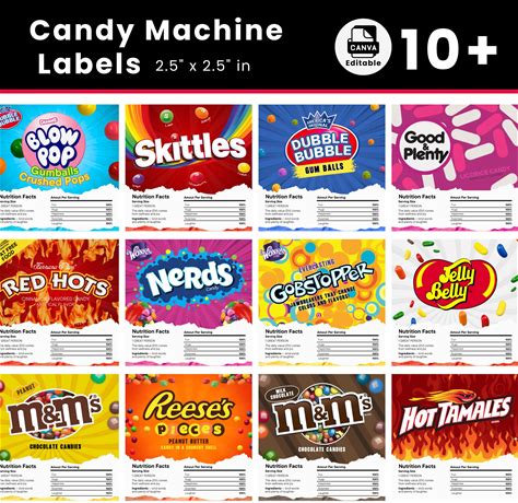 Candy Vending Machine Stickers Labels, 2.5" X 2.5", Nutrition Info Label, Candy Price Sticker, Vending Png Label, Pop Machine Labels