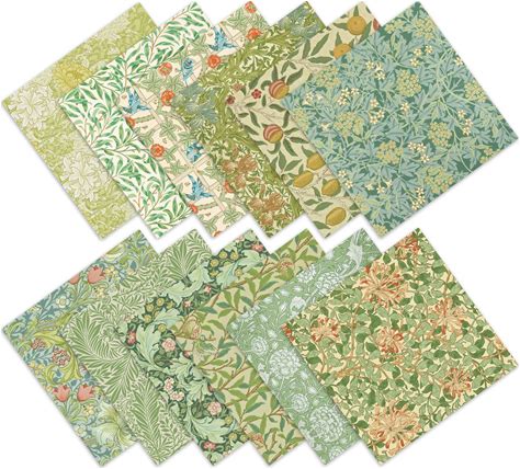 24 Sheets William Morris Wildfloral Scrapbook Paper 12'' X 12'' Green Blue Vines And Flowers Pattern Pad Vintage Flower Double-Sided Cardstock Paper