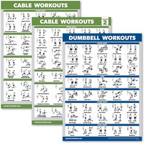 3 Pack - Cable Machine Workout Posters Volume 1 & 2 + Dumbbell Exercise Chart