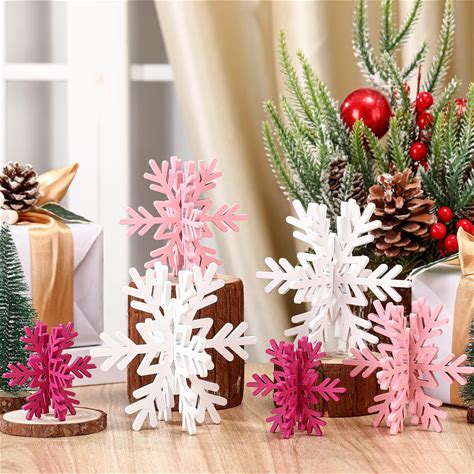 Maitys 12 Pcs Snowflake Tabletop Decor 3D White Snowflake Table Sign And Centerpiece Winter Tiered Tray Decor For For Winter Wonderland Decorations