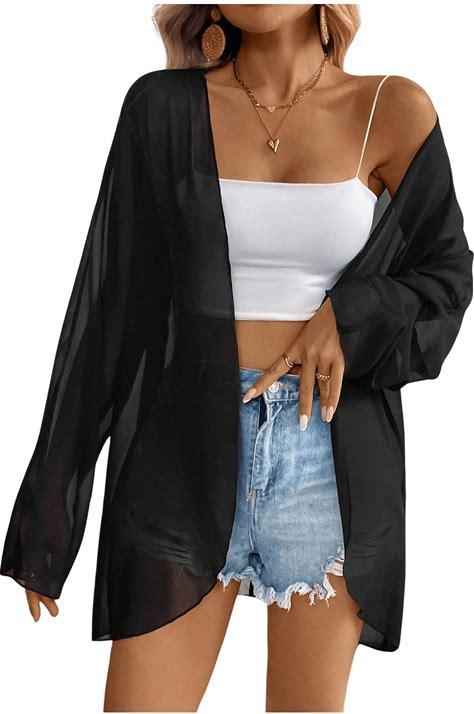 OYOANGLE Women's Chiffon Sheer Long Sleeve Open Front Cardigan See Through Casual Outerwear Coat