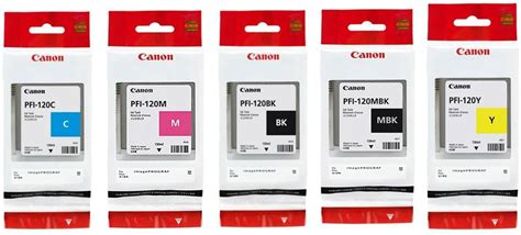 Canon PFI120 Pigment Ink Tank Bundle (Matte Black, Cyan, Magenta, Yellow, Black) In Retail Packaging
