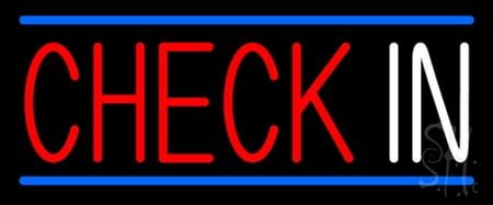 Check In With Blue Border LED Neon Sign 6 X 15 - Inches, Black Square Cut Acrylic Backing, With Dimmer - Bright And Premium Built Indoor LED Neon Sign