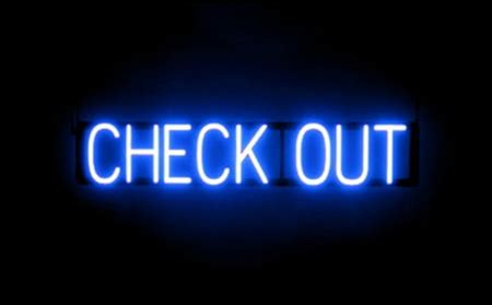 Spellbrite Check OUT LED Sign For Business. 33.7" X 6.3" Blue Check OUT Sign Has Neon Sign Look With Energy Efficient LED Light Source. Visible From 5