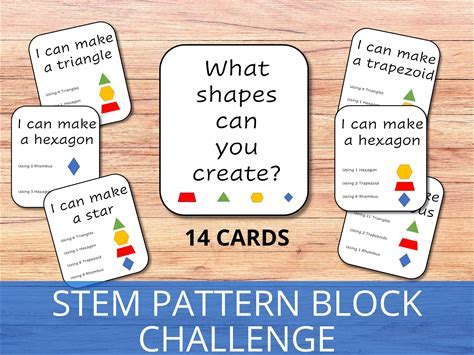 Pattern Blocks Stem Challenge Cards, Tangram Puzzle, 2D Shapes Resource, STEM Activity, Printable Flashcards, 2D Shape Worksheet