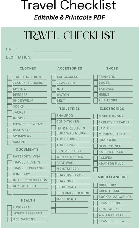 Travel Checklist, Printable Travel Packing List, Travel Essentials, H