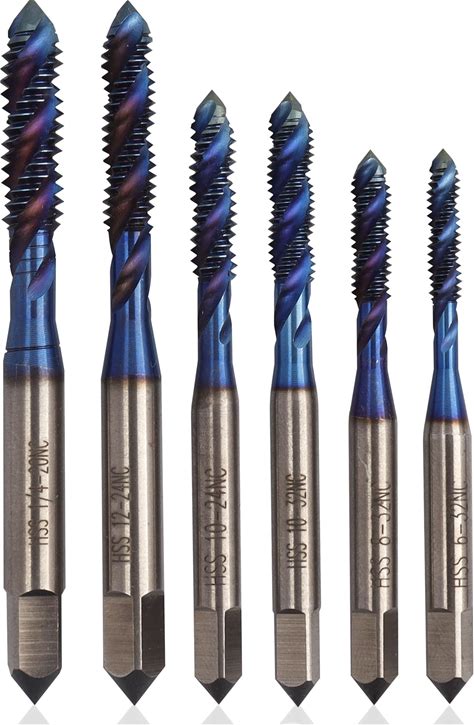 Yakamoz Spiral Flute Tap Set - 6Pcs SAE Tap Set Machine Tap Bits Screw Thread Tapping Tool For Metal, Wood, Plastic 6-32NC 8-32NC 10-24NC 10-32NC 12-