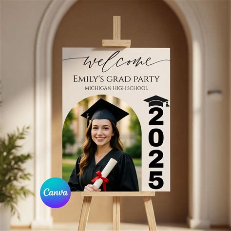 Graduation Welcome Sign Canva Template Class Of 2025, Senior Photo Graduation Welcome Poster, Editable Graduation Party Sign, Grad Poster