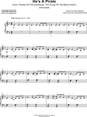 Easy Sheet Music - He's a Pirate Piano