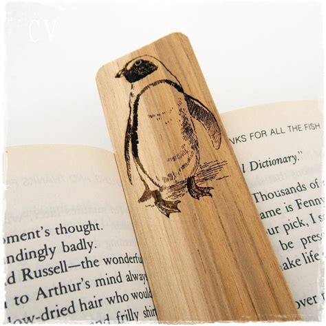Hand Painted Penguin Oak Bookmark: Bird Lover Gift