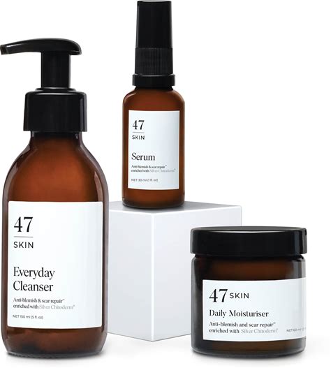 47 Skin | Daily Maintenance Skin Care Kit Bundle | Featuring Daily Moisturiser, Anti Blemish Serum And Everyday Cleanser | Contains Silver Chitoderm |