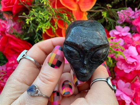 Hand-Carved Lava Stone Alien Skull: Volcanic Gemstone Sculpture