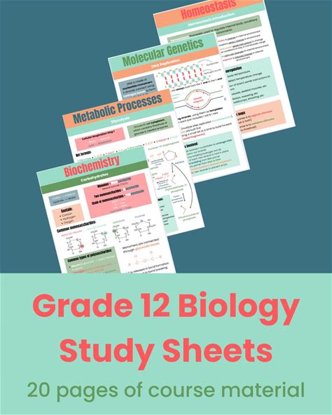 Grade 12 Biology Study Sheets