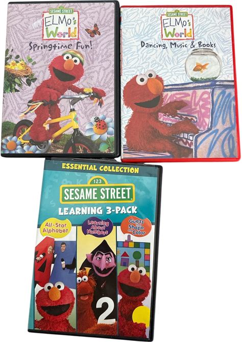 Lot Of (3) Sesame Street Dvds Elmos World Learning 3 Pack Springtime Fun