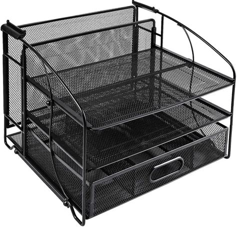 Rectangular Desk Organizer 3 Tray With Sliding Drawer And Hanging File Holder, Black