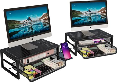Ekisemio 2 Pack Desk Organizer And Accessories, 2-Tier Metal Computer Monitor Stand Riser With Drawer, Desk Accessories & Workspace Organizers For