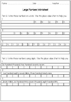 Top suggestions for Large Numbers Worksheet |